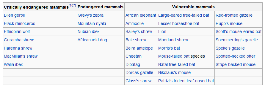 Ethiopia is an ecologically diverse country, ranging from the deserts along the eastern border to the tropical forests in the south to extensive Afromontane in the northern and southwestern parts. Lake Tana in the north is the source of the Blue Nile. It also has a large number of endemic species, notably the Gelada Baboon, the Walia Ibex and the Ethiopian wolf (or Simien fox). The wide range of altitude has given the country a variety of ecologically distinct areas, this has helped to encourage the evolution of endemic species in ecological isolation.